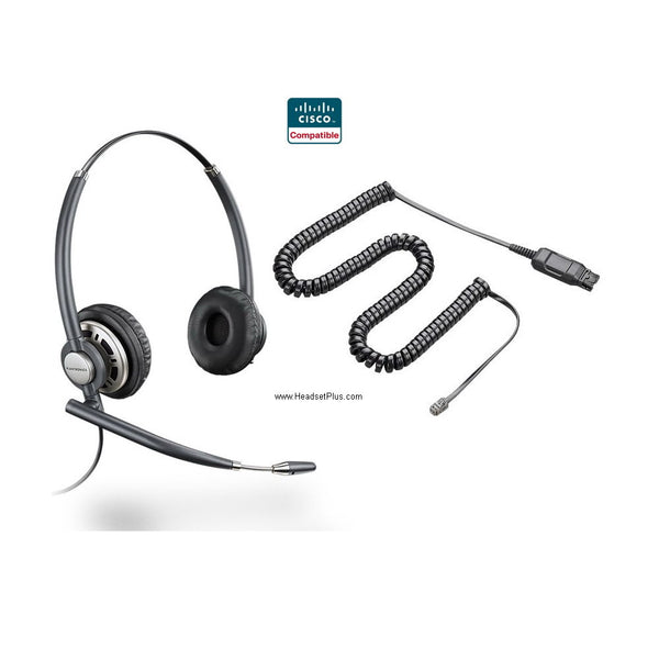 Plantronics HW720-CIS (formerly HW301N-CIS) is a headset design just for the Cisco IP Phones. It comes complete with the RJ-9 modular bottom cable that's 100% compatible with Cisco IP Phones (see models below). It's a binaural (cover both ears) headset is top-of-the-line Plantronics model that offers awesome comfort with superior audio clarity and sleek looks. Plantronics HW720-CIS EncorePro headset delivers unprecedented style and performance to Cisco IP Phone based call center professionals. Premium lightweight nylon composite materials and plush leatherette ear pads provide all-day comfort. Ultra-Noise canceling microphone and wideband audio ensure crystal-clear customer communications.