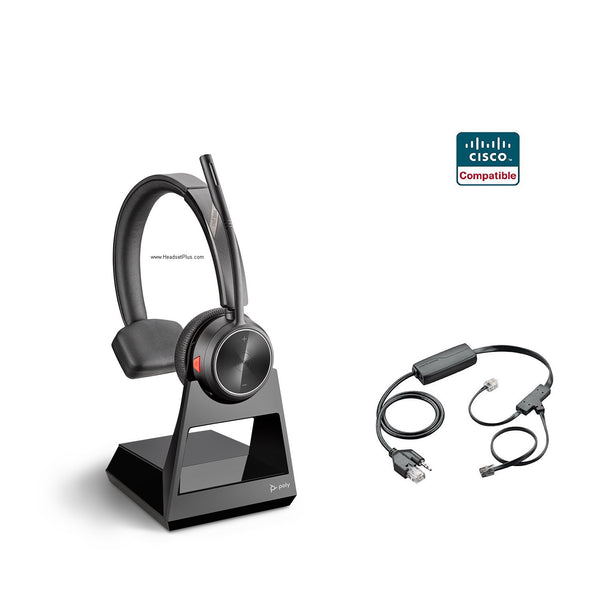 This is the Cisco Certified  Poly Savi 7210 + EHS Remote Answer package.  This Poly (formerly Plantronics)  wireless headset packaged together with Cisco Adapter (Cisco EHS cable).  Together this bundle package will provide you the ability to answer your Cisco IP phone remotely, up to 400ft away. The Poly Savi 7210 is an over-the-head style headset. Equipped with a noise canceling microphone, wide band audio, it's one of the best headset on the market today for the Cisco IP phone.